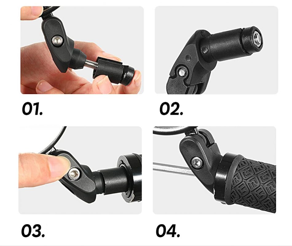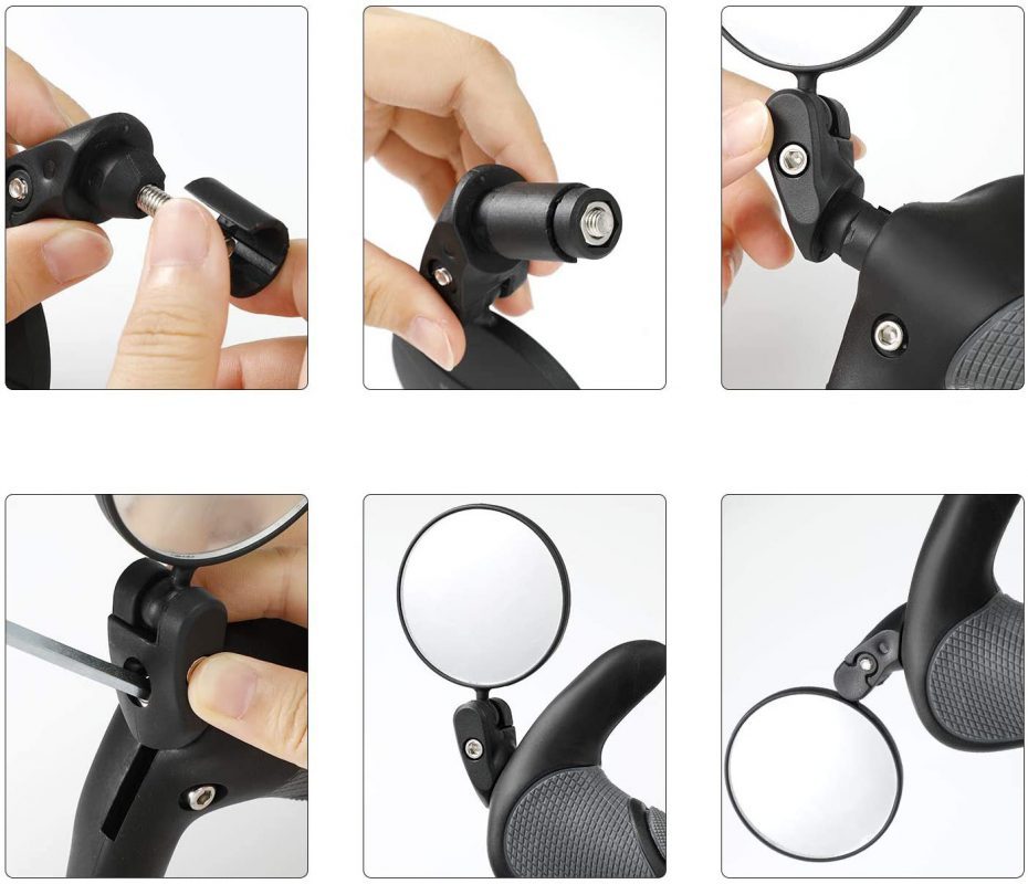 Oglinda retrovizoare se fixează în mânerul bicicletei cu ajutorul unui șurub. Acest lucru asigură stabilitatea sa în timpul conducerii.