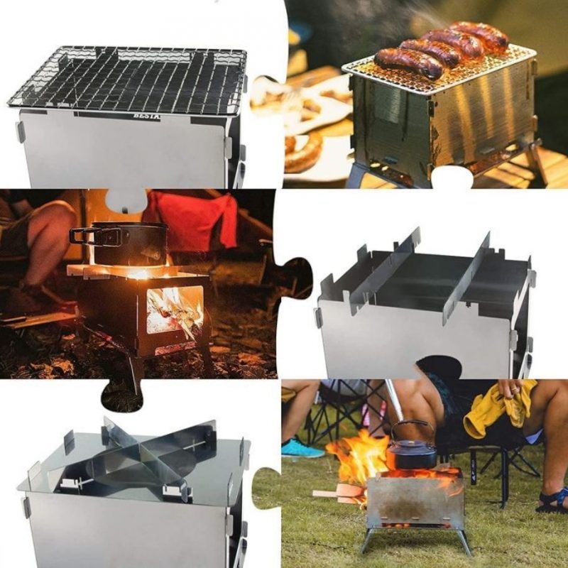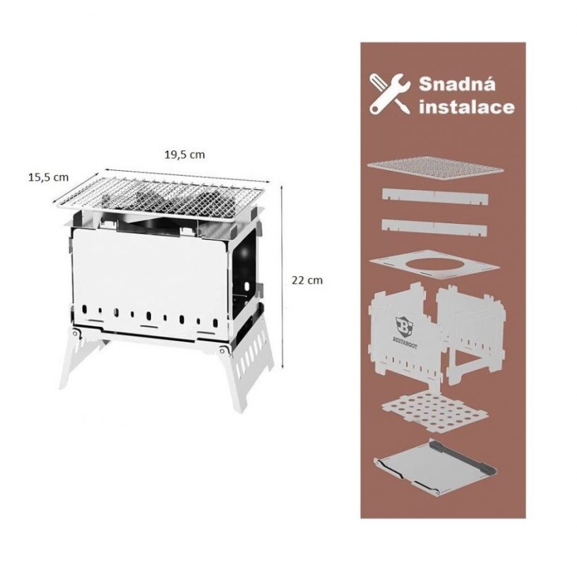 Grătar camping pliabil sau sticla de alcool, pentru asamblarea căruia nu este nevoie de unelte. Este livrat compact, împachetat într-o geantă de depozitare, pregătit pentru călătorie.
