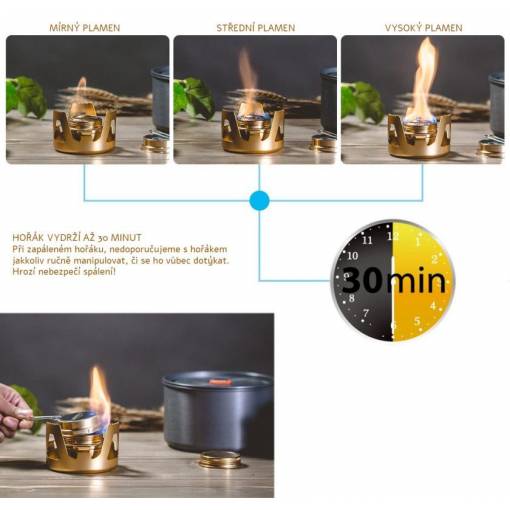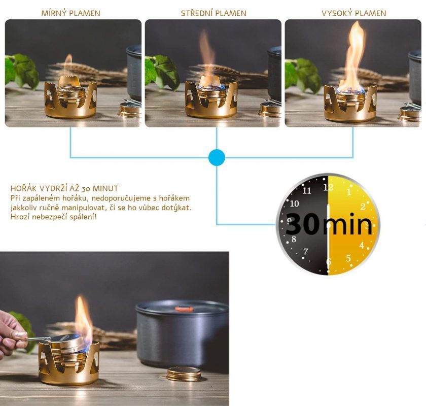 În mijlocul suportului din aluminiu, veți găsi un rezervor din cupru de calitate. Rezervorul are un capac cu inel de etanșare, astfel că nu va trebui să vă descărcați combustibilul neconsumat înainte de utilizare.