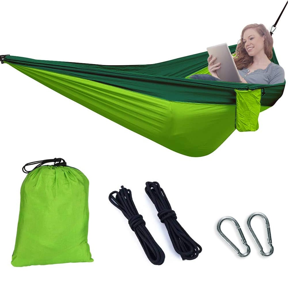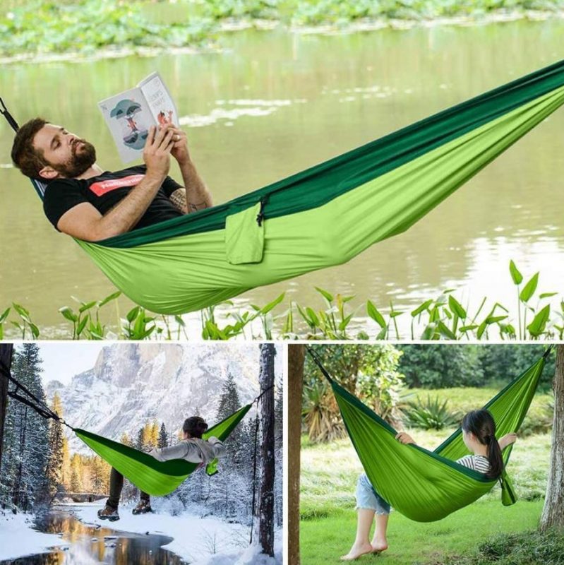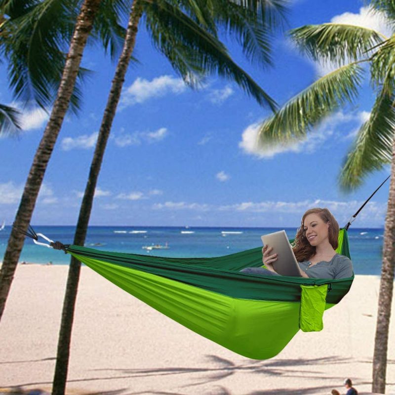 Material de calitate: Hamaca este confecționată din nylon 210T Ripstop de calitate, cu cusături din nylon triple, utilizat printre altele pentru fabricarea parașutelor.