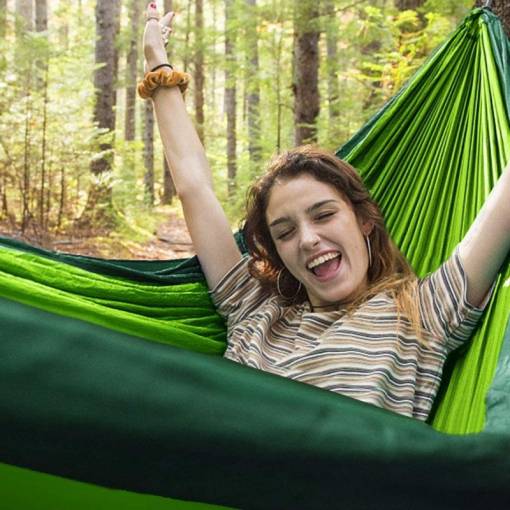 Material de calitate: Hamaca este confecționată din nylon 210T Ripstop de calitate, cu cusături din nylon triple, utilizat printre altele pentru fabricarea parașutelor.