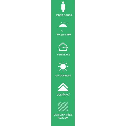 În partea superioară a cortului se află două feronerie, asigurând o bună circulație a aerului.