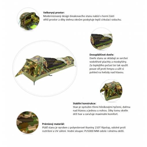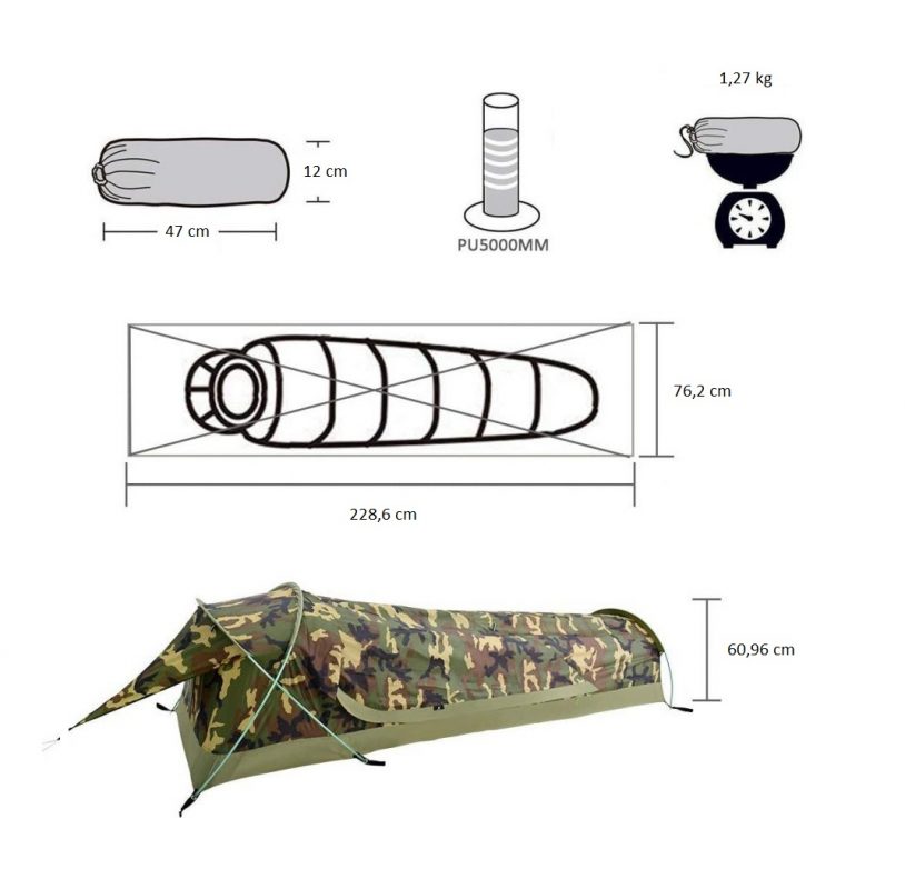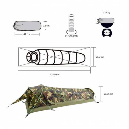 Cort ultraușor tip bivy, care cântărește doar 1,27 kg și se pliază la dimensiuni de doar 47 x 12 x 12 cm, oferind un ambalaj compact și confort optim pentru 1 persoană.