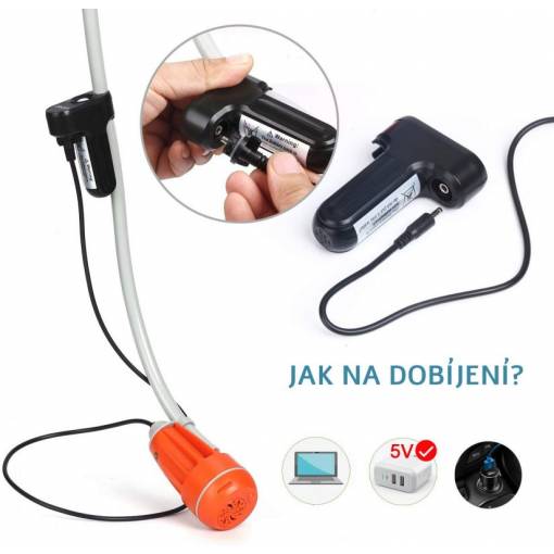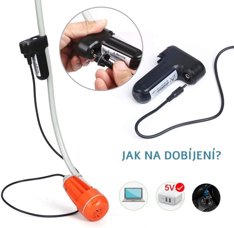 Durată lungă de viață: Dușul este livrat cu o baterie USB detașabilă cu o capacitate de 2200 mAh (cu un întrerupător extern), care este separabilă de pompă.
