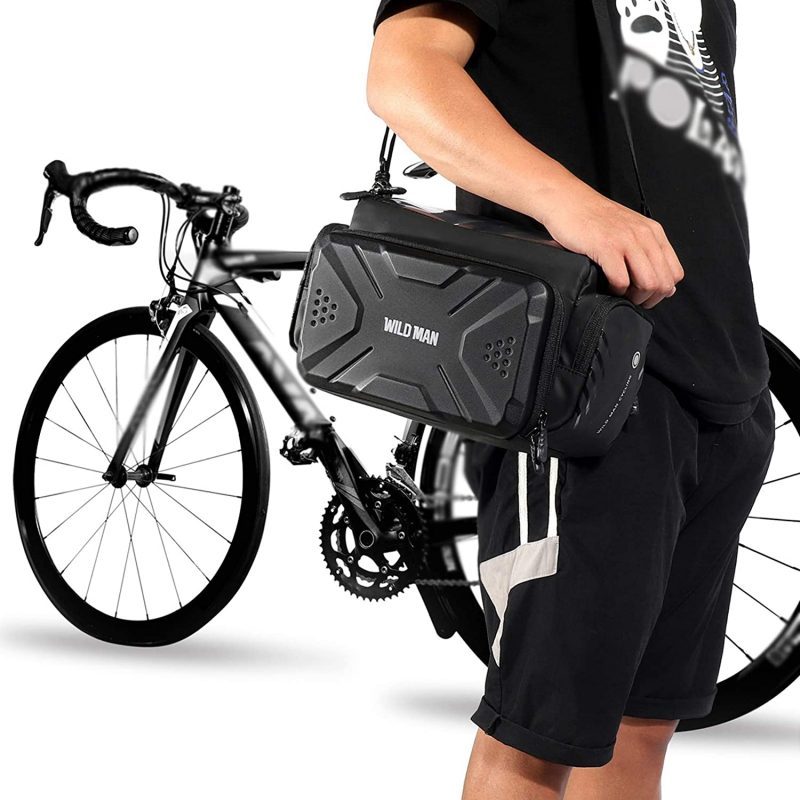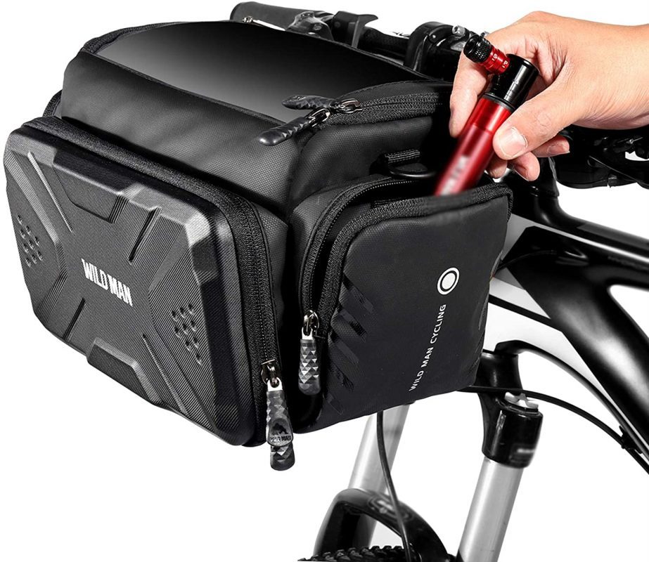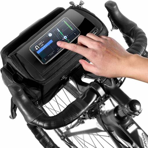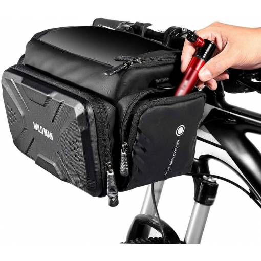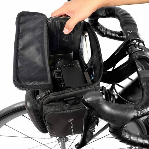 Geanta spațioasă pentru bicicletă are o capacitate de 4 litri. Compartimentul principal generos și cele trei buzunare mai mici, căptușite, cu fermoar, pot organiza tot echipamentul necesar pentru plimbarea pe bicicletă.