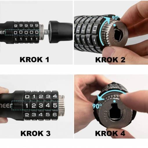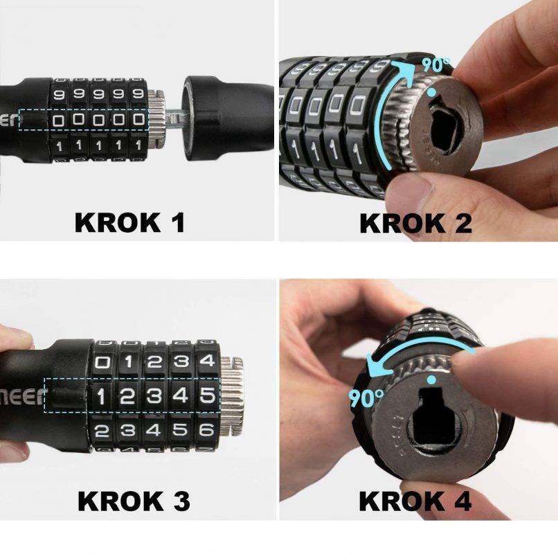 Lacăt numeric avansat: Acest lacăt pentru bicicletă oferă un lacăt numeric avansat cu 5 cifre, permițând alegerea unui cod dintr-o serie de 100 000 de combinații.