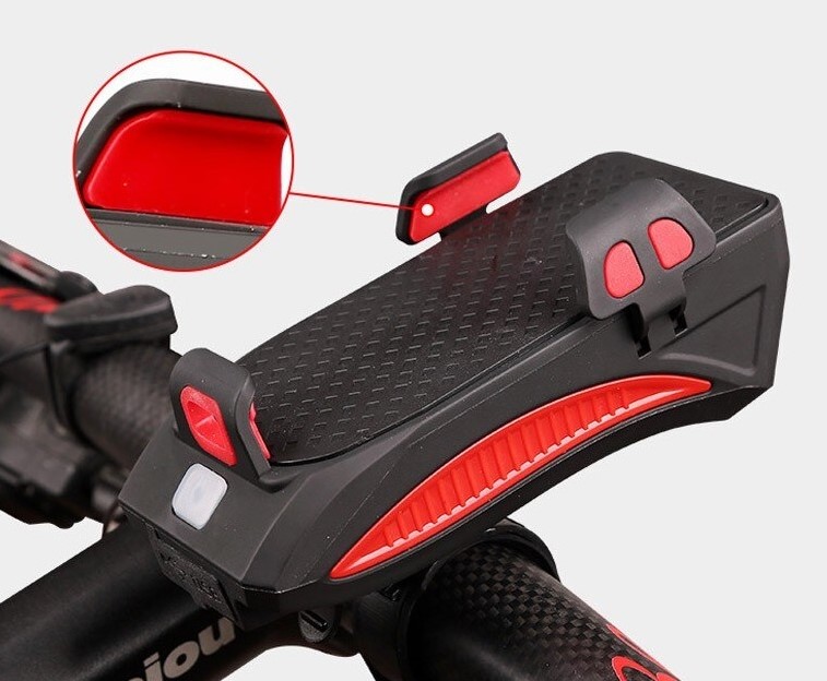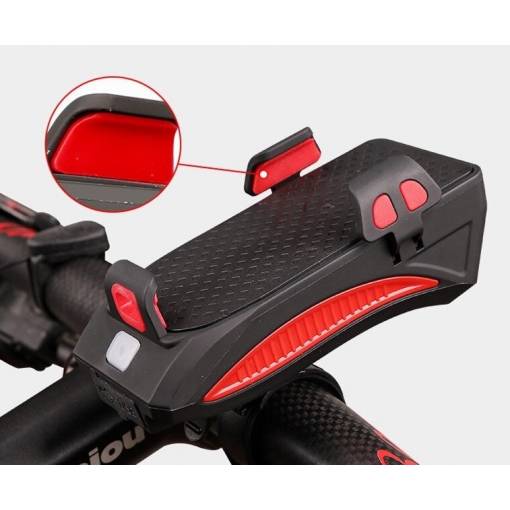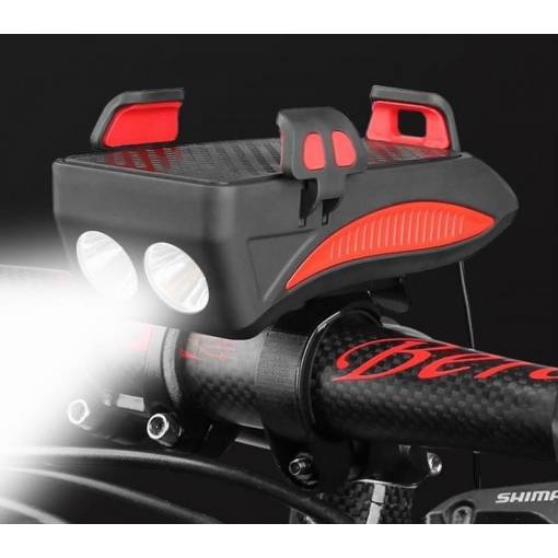 Lampa LED de bicicletă cu o intensitate de 400 lumeni are trei moduri de intensitate (lumina puternică, lumina slabă, clipire). Are un suport ajustabil între 5 - 8 cm, potrivit pentru majoritatea telefoanelor mobile, cu o protecție încorporată împotriva șocurilor.