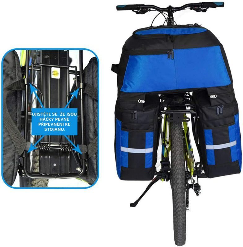 Geantă multifuncțională 3 în 1 pentru bicicletă cu o capacitate de 70 litri este soluția ideală pentru excursii mai lungi.