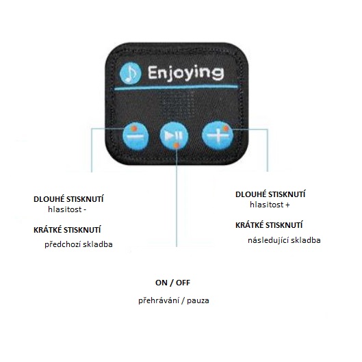 Brățară sportivă cu căști wireless integrate și panou de control cu butoane. Inclusiv un microfon integrat pentru apeluri (la o distanță de 1 metru).
