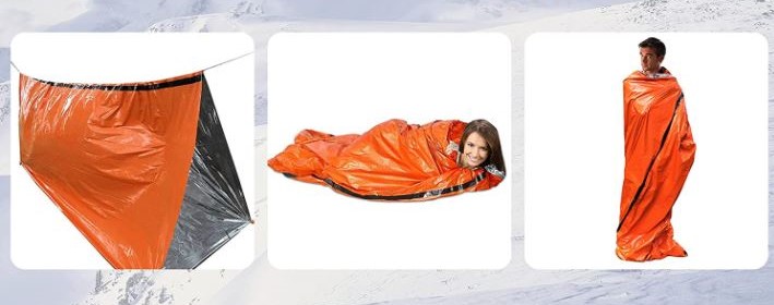 Universale: Sacul de dormit de urgență combină proprietăți de supraviețuire, protecție, suport pentru sacul de dormit și pânze impermeabile.