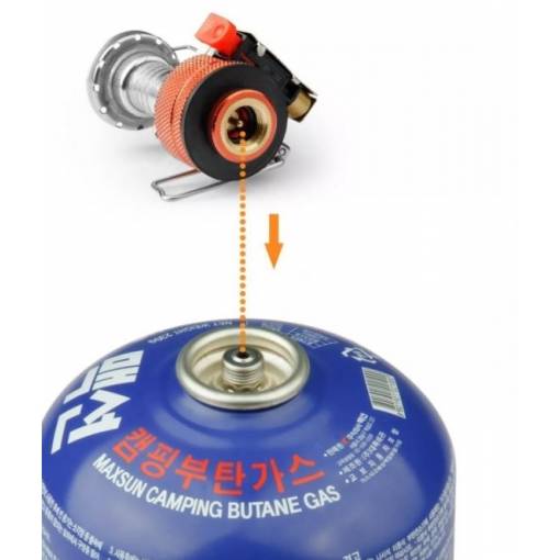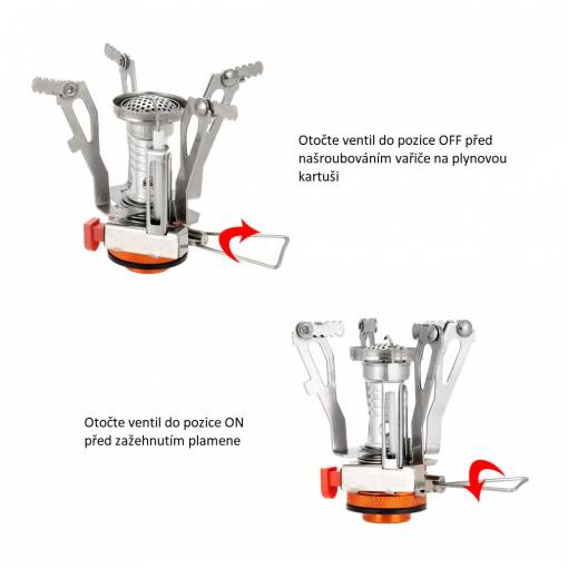 Atunci când înșurubați aragazul pe cartușul de gaz, este important să rotiți supapa în poziția OFF. După înșurubare, rotiți supapa în poziția ON și aprindeți focul.