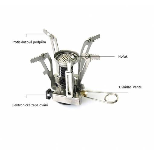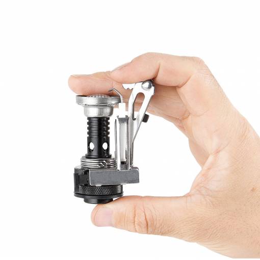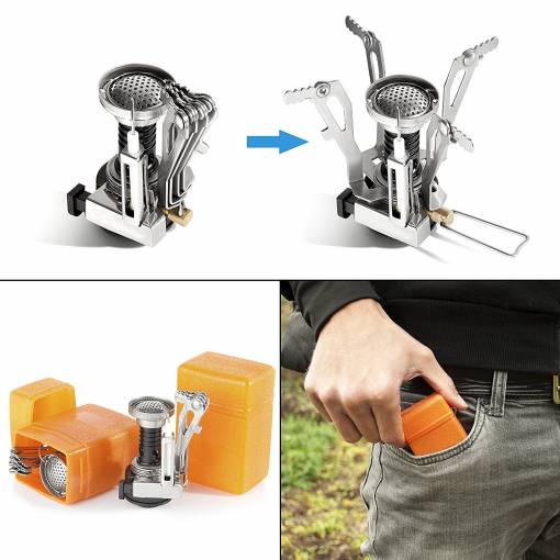Când călătoriți, puteți plia acest aragaz într-o cutie de plastic compactă de dimensiunea de 8 x 5 cm, care este inclusă în ambalaj.