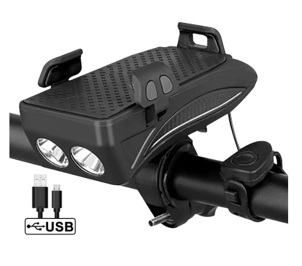Lumină pentru bicicletă 4 în 1 4000 mAh cu suport pentru telefon - Albastră