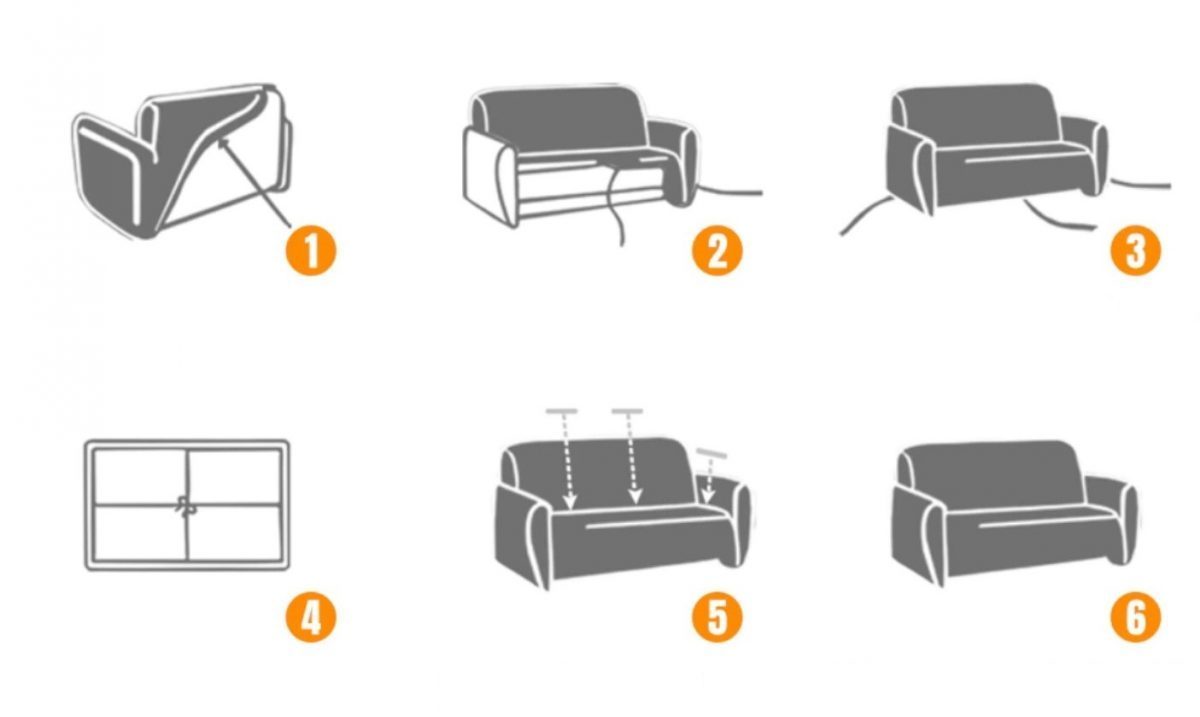 În ambalaj veți găsi și opt role căptușite pentru a fixa husa între pernele canapelei. În cazul necesității, aceste role pot fi tăiate pe jumătate pentru a obține mai multe puncte de susținere.