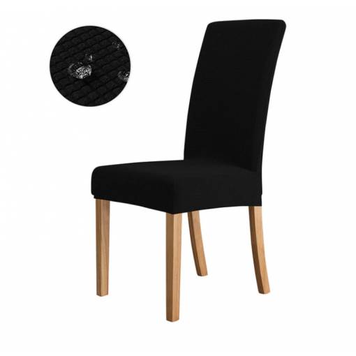 Husa elastică, impermeabilă, dintr-un material de calitate, respirabil, de culoare neagră este potrivită chiar și pentru scaune cu spătar înalt, datorită materialului solid, husele își păstrează forma și nu alunecă de pe scaun.