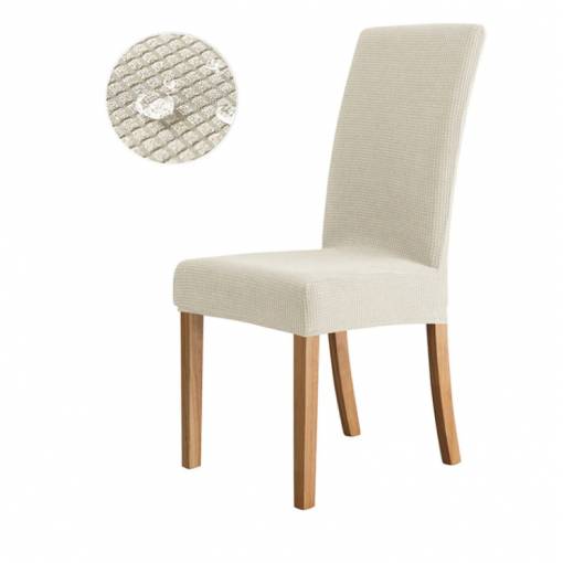 Husa elastică, impermeabilă, dintr-un material de calitate, respirabil, de culoare bej este potrivită chiar și pentru scaune cu spătar înalt, datorită materialului solid, husele își păstrează forma și nu alunecă de pe scaun.