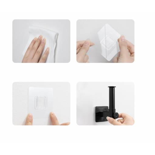 Suportul ușor este simplu de instalat pe o suprafață curată și degresată cu ajutorul etichetei autoadezive incluse în ambalaj.