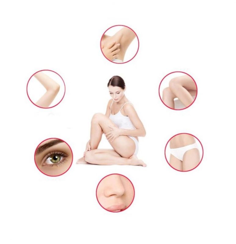 Epilatorul are cinci capete interschimbabile potrivite pentru diferite părți ale corpului: