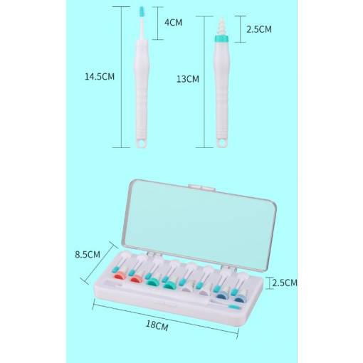 Ajuta perfect la curățarea urechilor de cerumenul în exces, utilizând o spirala moale sau periuțele moi, materialul elastic împiedică deteriorarea timpanului, dar în același timp elimină perfect cerumenul în exces.