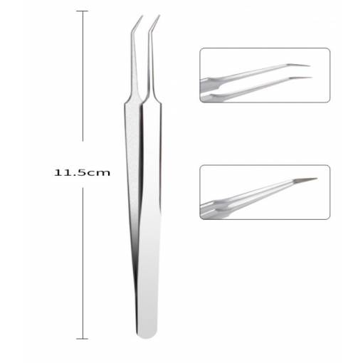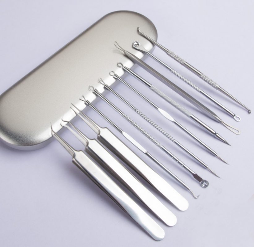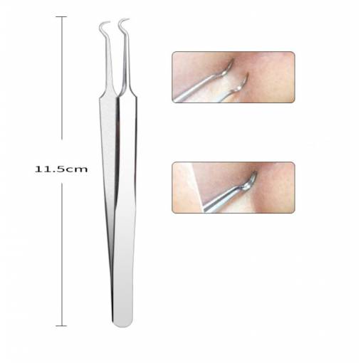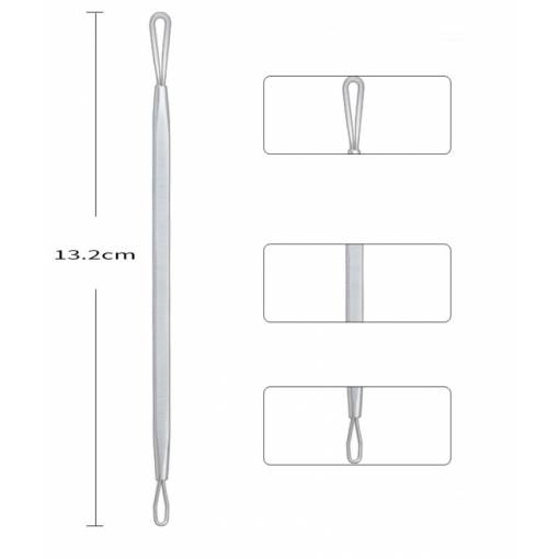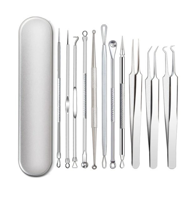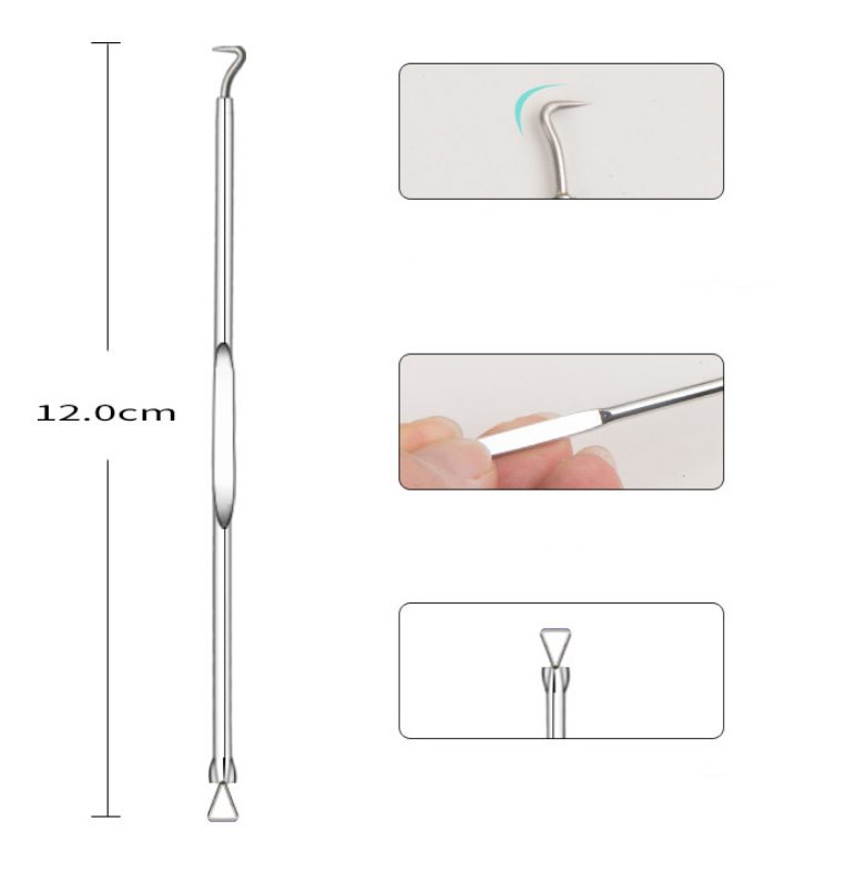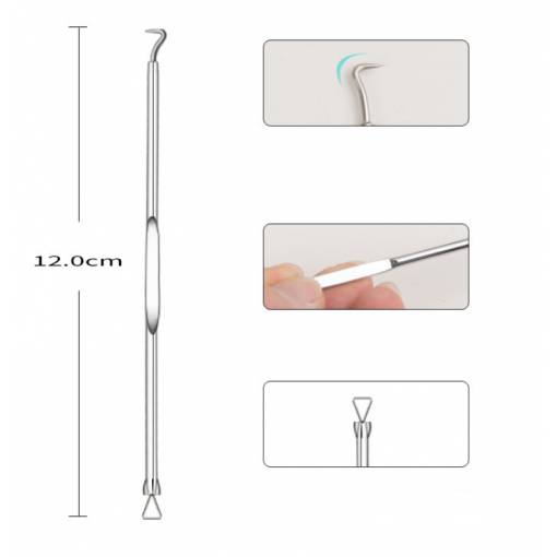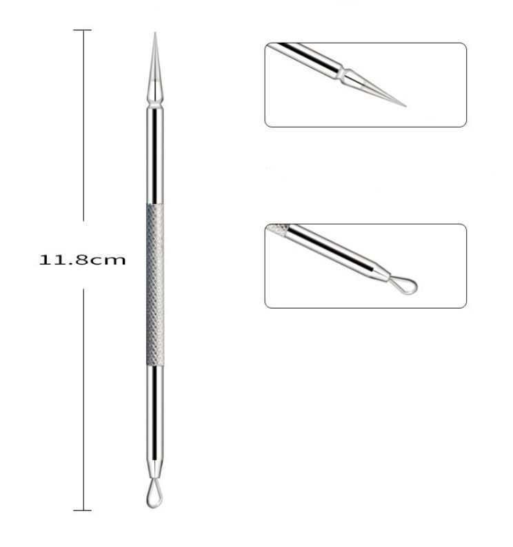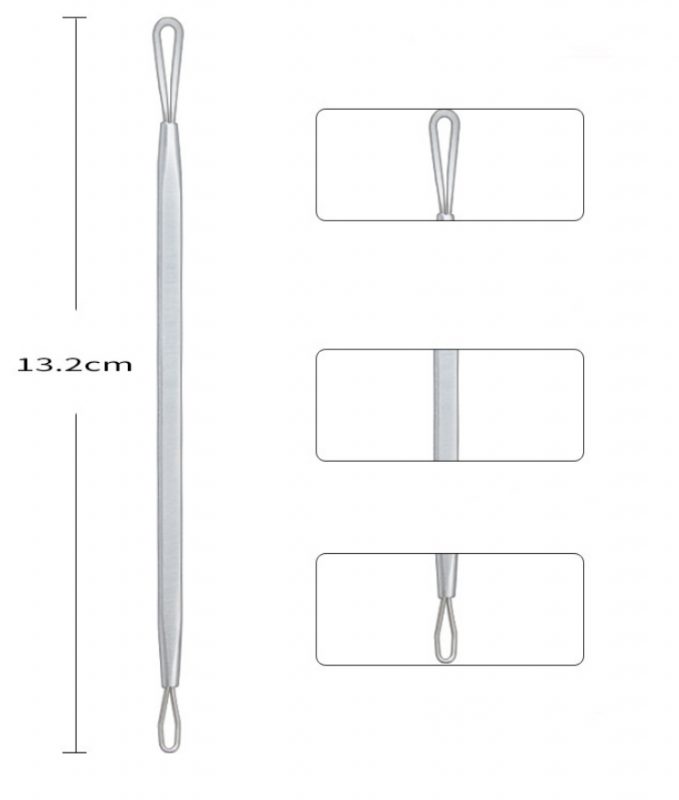 Setul conține ace, bucle, cârlige pentru pensetă, un cârlig simplu și pensetă ascuțită, care sunt folosite pentru a elimina leziunea acneică, coșurile și comedoanele.