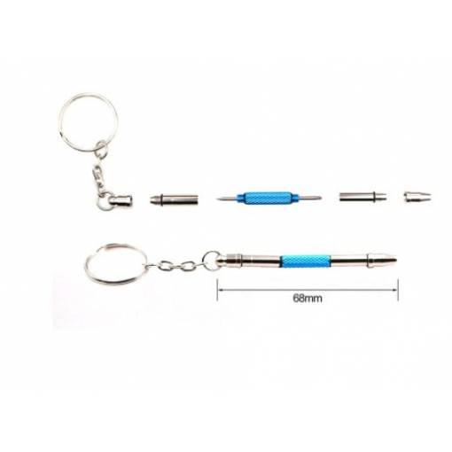 Ambalajul conține o mini șurubelniță 5 în 1 cu inel pentru chei.