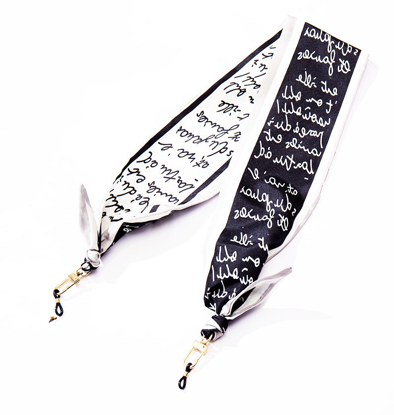 Eșarfa din mătase în locul șiragului pentru fixarea ochelarilor în jurul gâtului este nu doar practică, ci servește și ca un splendid accesoriu de modă.