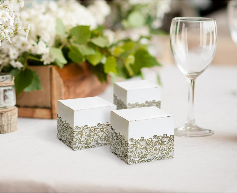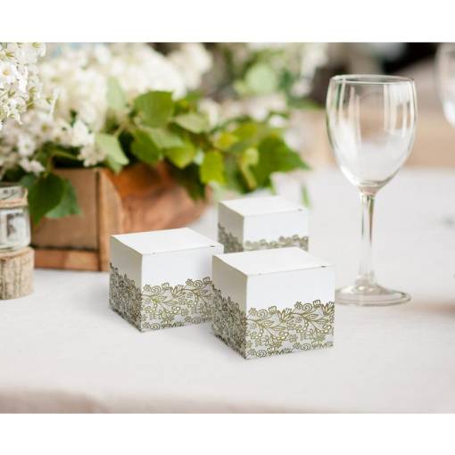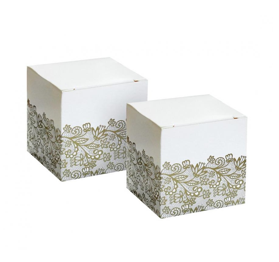 Cutii din hârtie cu imprimeu auriu - 5x5x5cm, 6 buc.