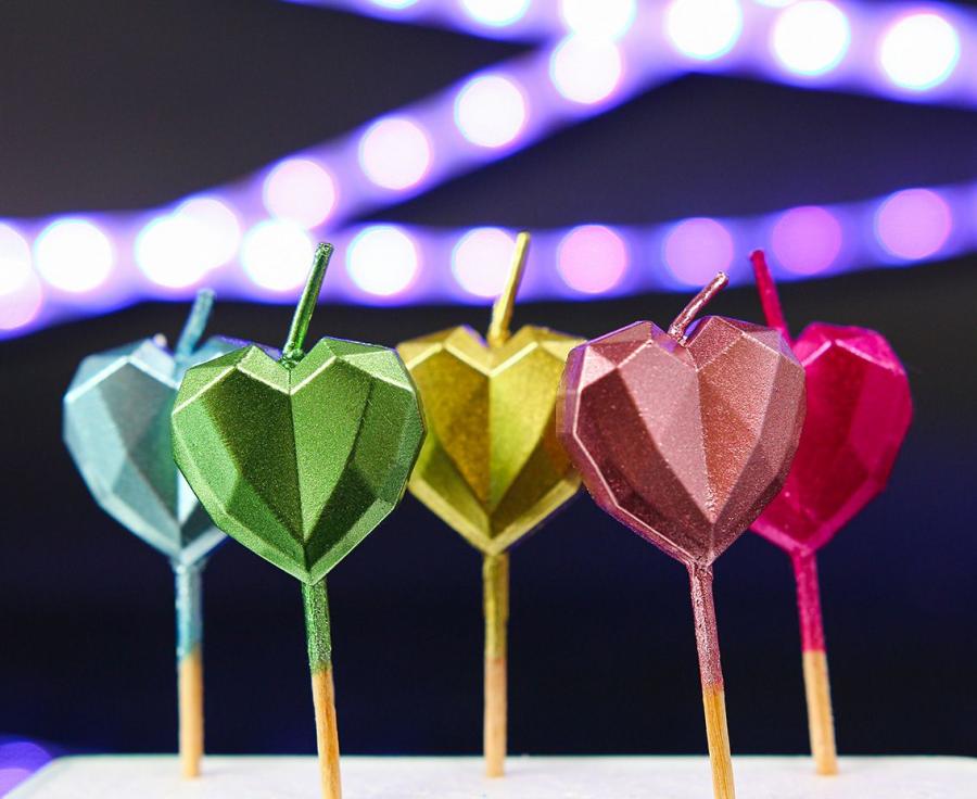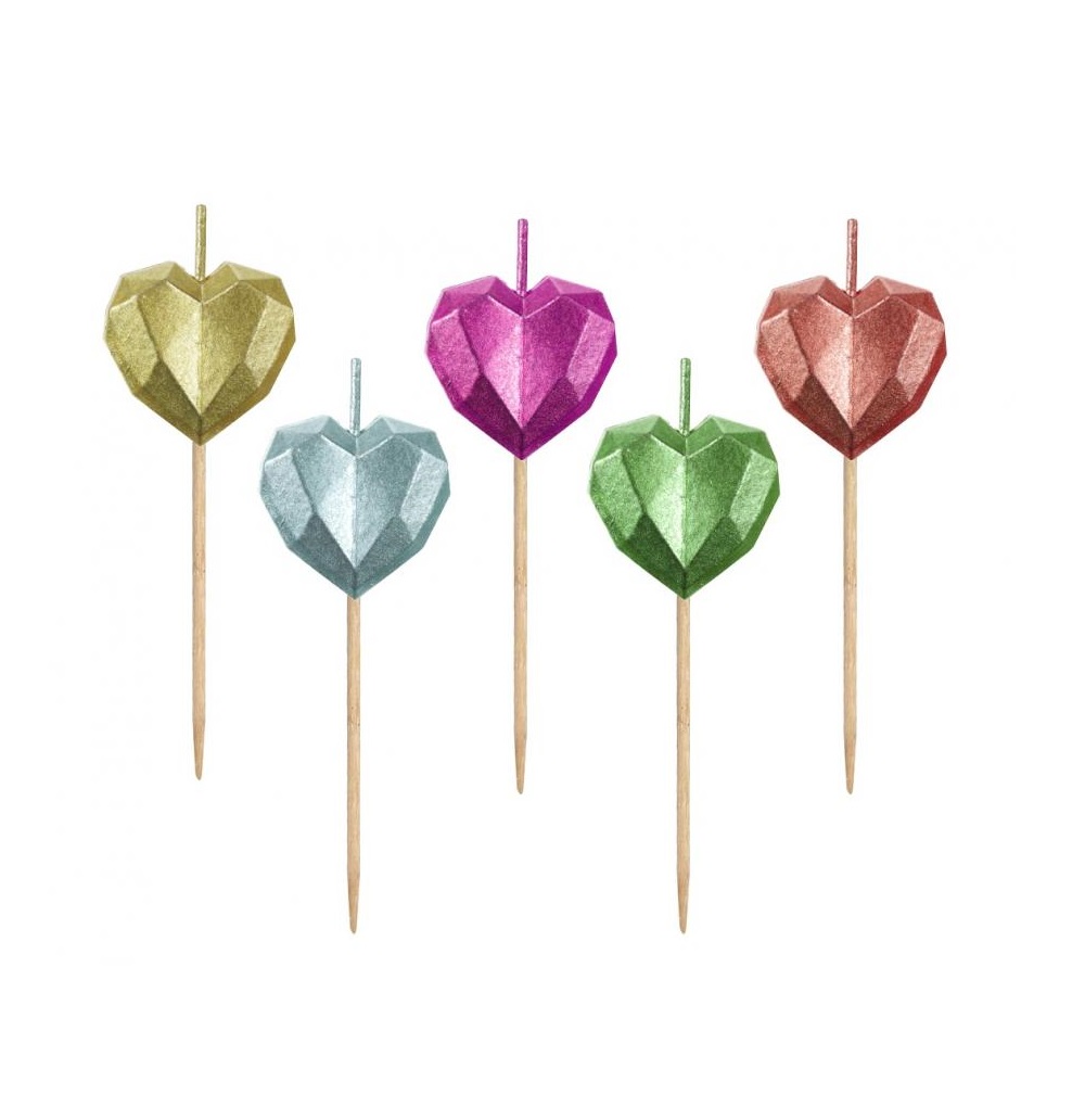 Lumânări cu suport - Inimi metalice, 5 buc.