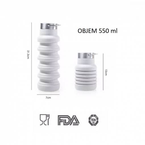 Ambalajul conține o sticlă silicolică pliabilă cu capacitate de 550 ml.