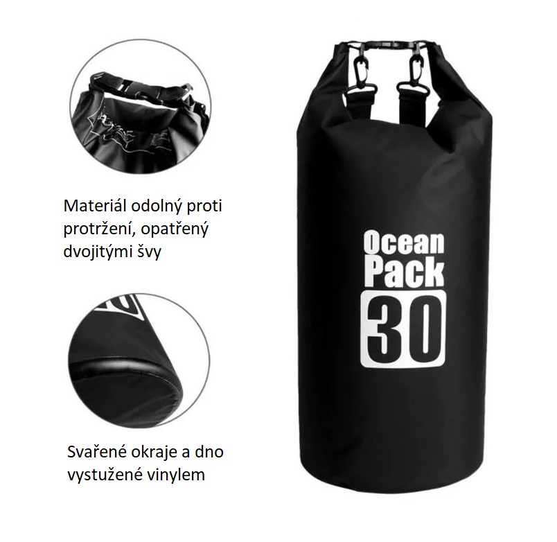 Ambalajul conține un sac waterproof de 30 litri.