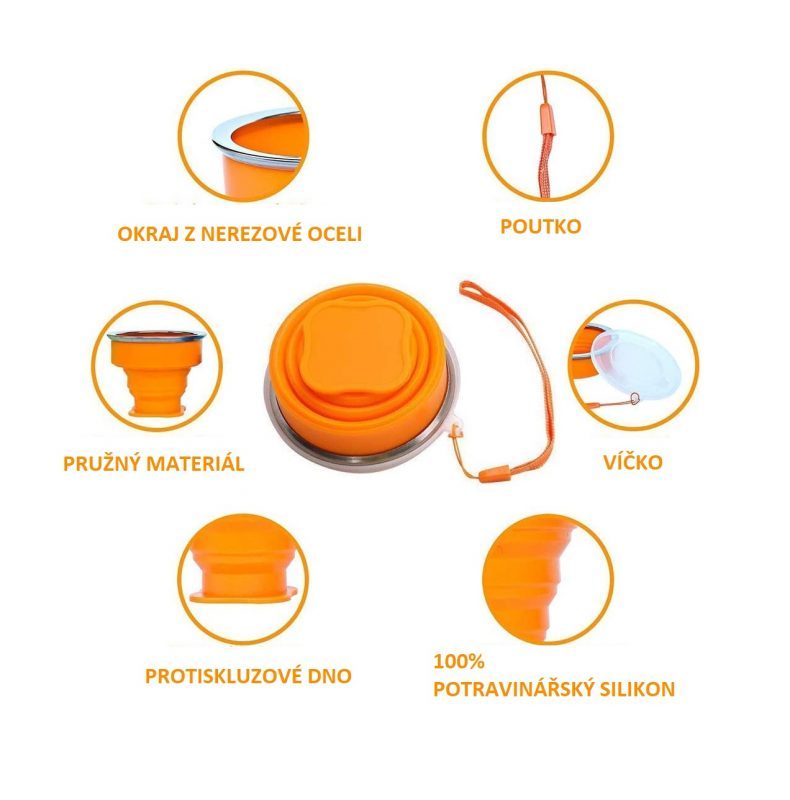 Ambalajul conține o cupă pliabilă din silicon 200 ml.