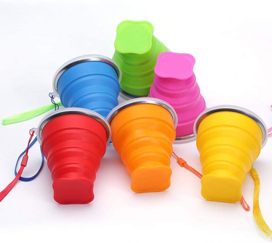 Cupa pliabilă din silicon cu capac. Practică, ușoară și rezistentă la șocuri.