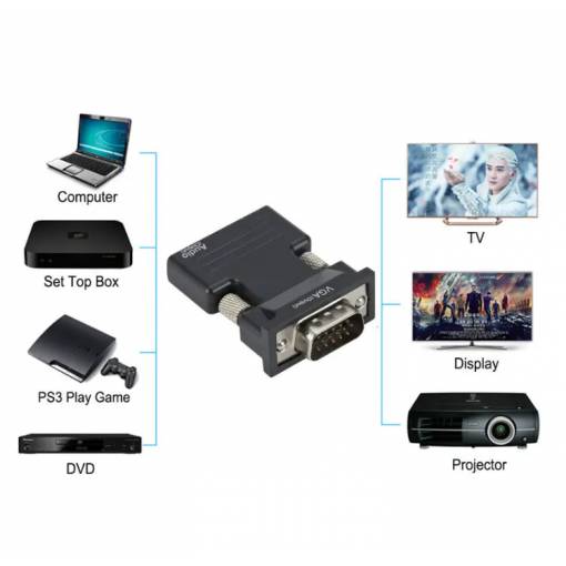 Adaptor Plug and Play HDMI la VGA, nu este necesară instalarea niciunui driver.