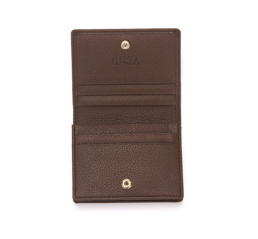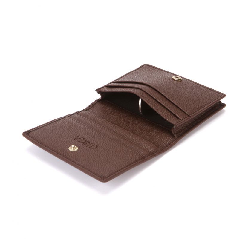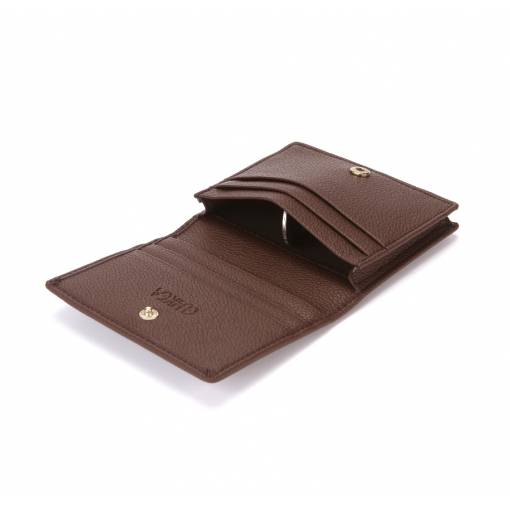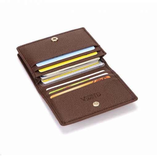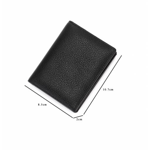 Portofel compact cu șapte compartimente pentru carduri și bancnote.