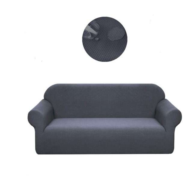 Husa elastică, rezistentă la apă, din material de calitate, respirabil, recomandată pentru o canapea cu două locuri dreptunghiulară.