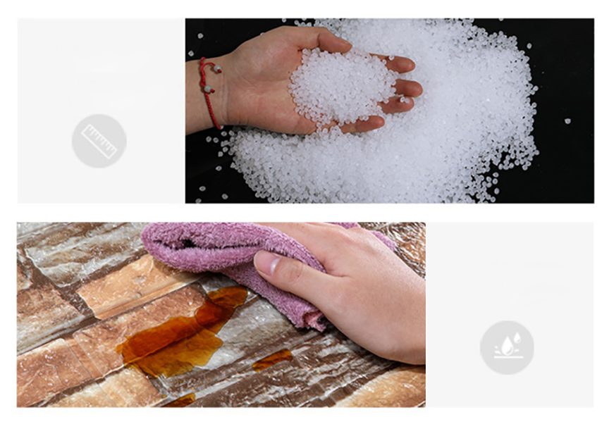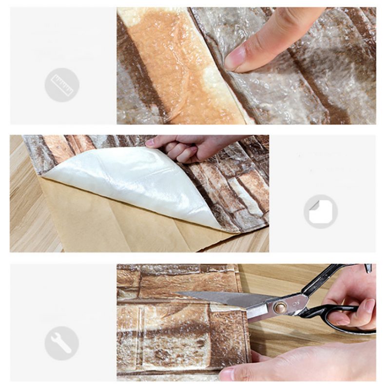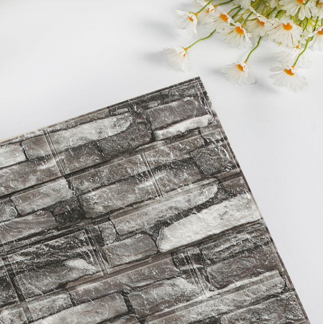 Panele autocolante 3D sunt fabricate din polietilenă spumată, sudate termic cu un film de protecție decorativ PE (polimer termoplastic din etilenă).