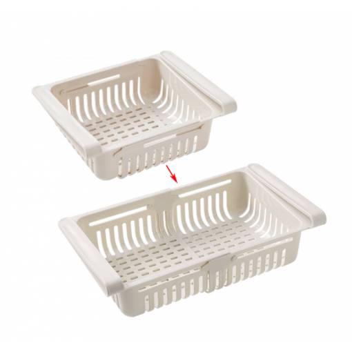O mai bună organizare a spațiului din frigider va fi facilitată de acest raft extensibil, care are orificii de scurgere și ventilație, dotat cu două clipsuri care se potrivesc ușor pe marginea raftului de sticlă.