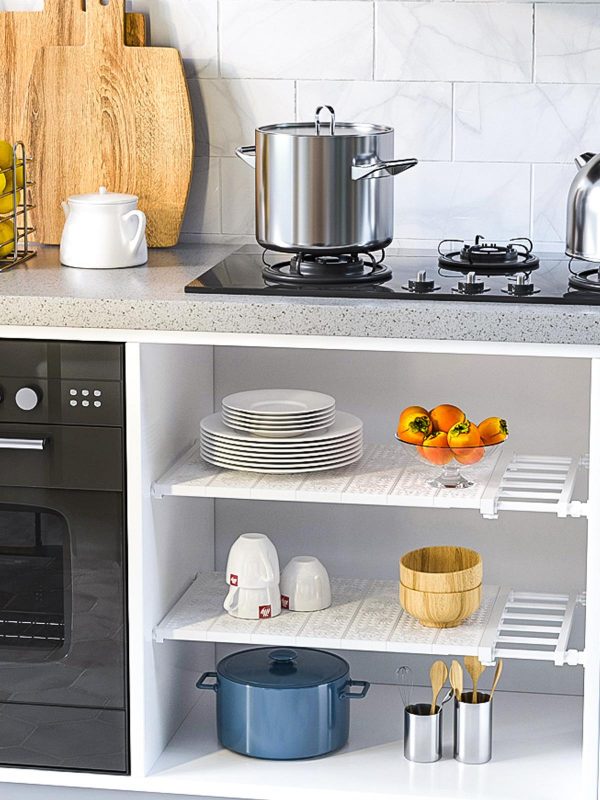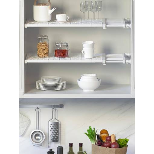 Raft extensibil și ajustabil pentru utilizarea perfectă a spațiului, care poate fi montat ușor fără șuruburi, cuie sau lipici.