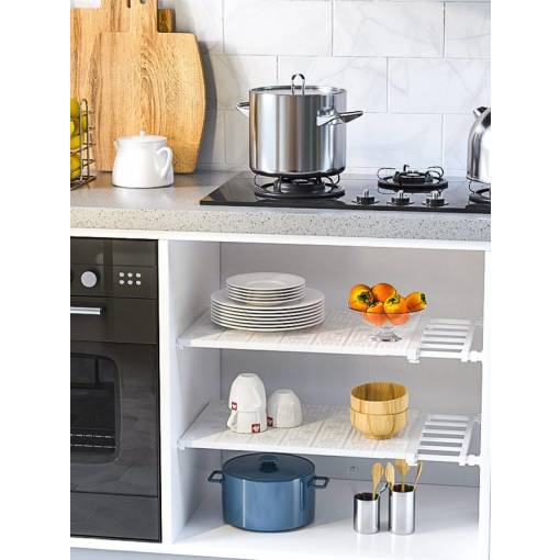 Raft extensibil și ajustabil pentru utilizarea perfectă a spațiului, care poate fi montat ușor fără șuruburi, cuie sau lipici.