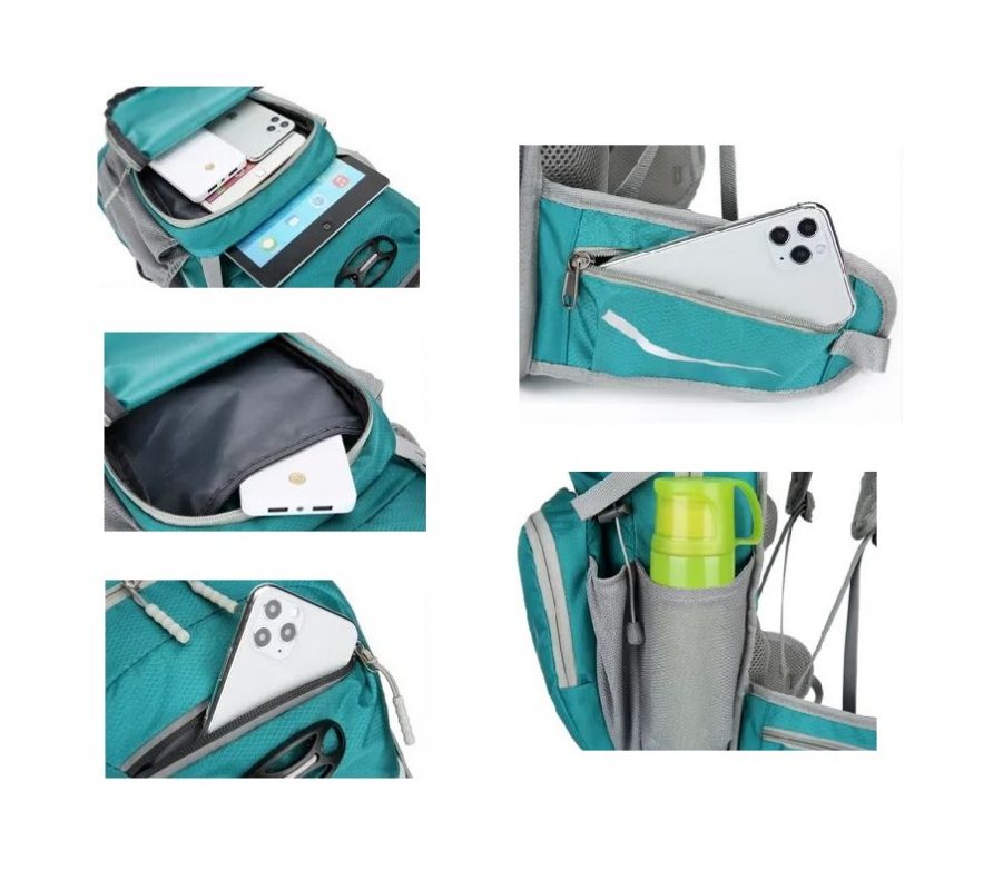 Oferă suficient spațiu pentru a depozita toate esențialele pentru o excursie de ciclism și un buzunar separat pentru rezervorul de apă cu ieșire pe furtun.