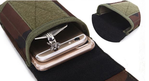 Husă tactică căptușită pentru telefonul mobil cu curele pentru fixarea pe curea sau alte echipamente tactice (rucsac, geantă, vestă etc.)