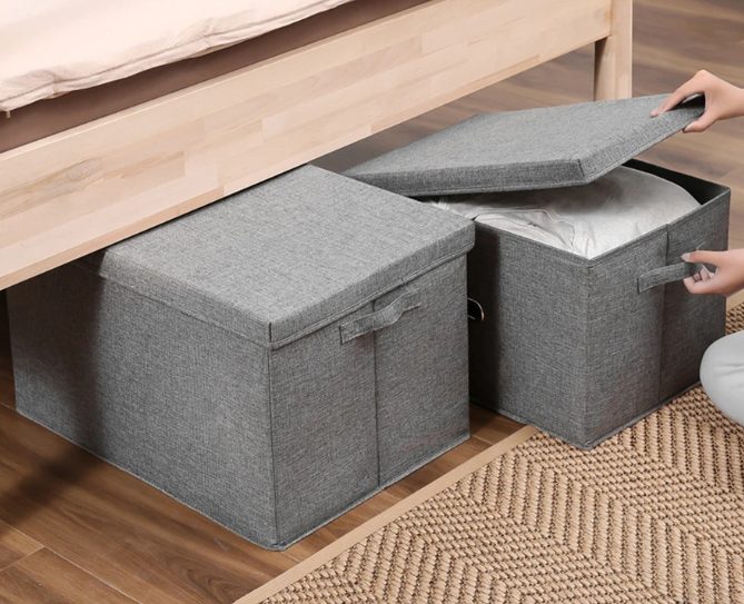 Cutii de depozitare practice care se potrivesc perfect în fiecare colț, realizate din material netesut care este ecologic și foarte rezistent.