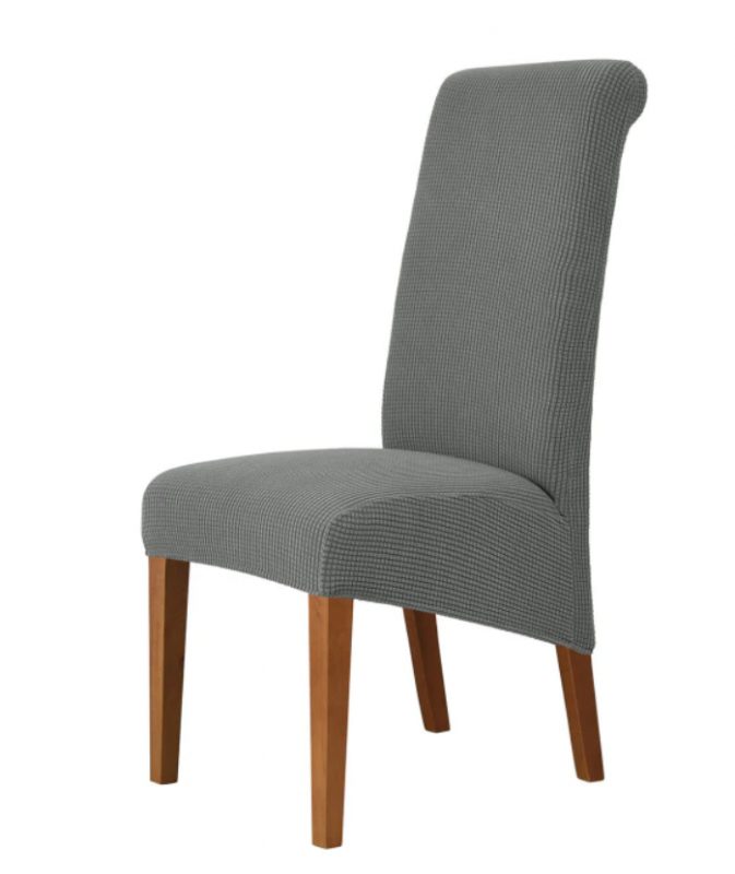Husa elastică, rezistentă la apă, dintr-un material de calitate, respirabil, în culoare gri este potrivită și pentru scaune cu spătar înalt, datorită materialului solid husele își păstrează forma și nu alunecă de pe scaun.