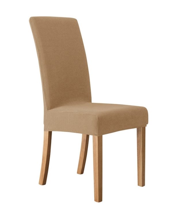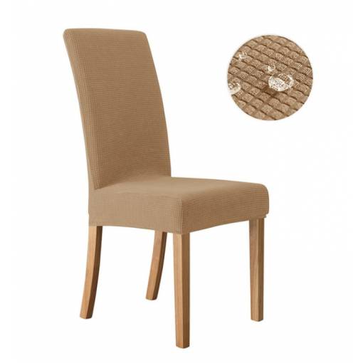 Husa elastică, rezistentă la apă, dintr-un material de calitate, respirabil, în culoare bej este potrivită și pentru scaune cu spătar înalt, datorită materialului solid husele își păstrează forma și nu alunecă de pe scaun.