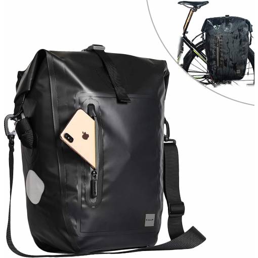 Geanta are un sistem de suspendare ajustabil pentru fixarea pe suportul de bicicletă și o curea de umăr detașabilă pentru purtare confortabilă.