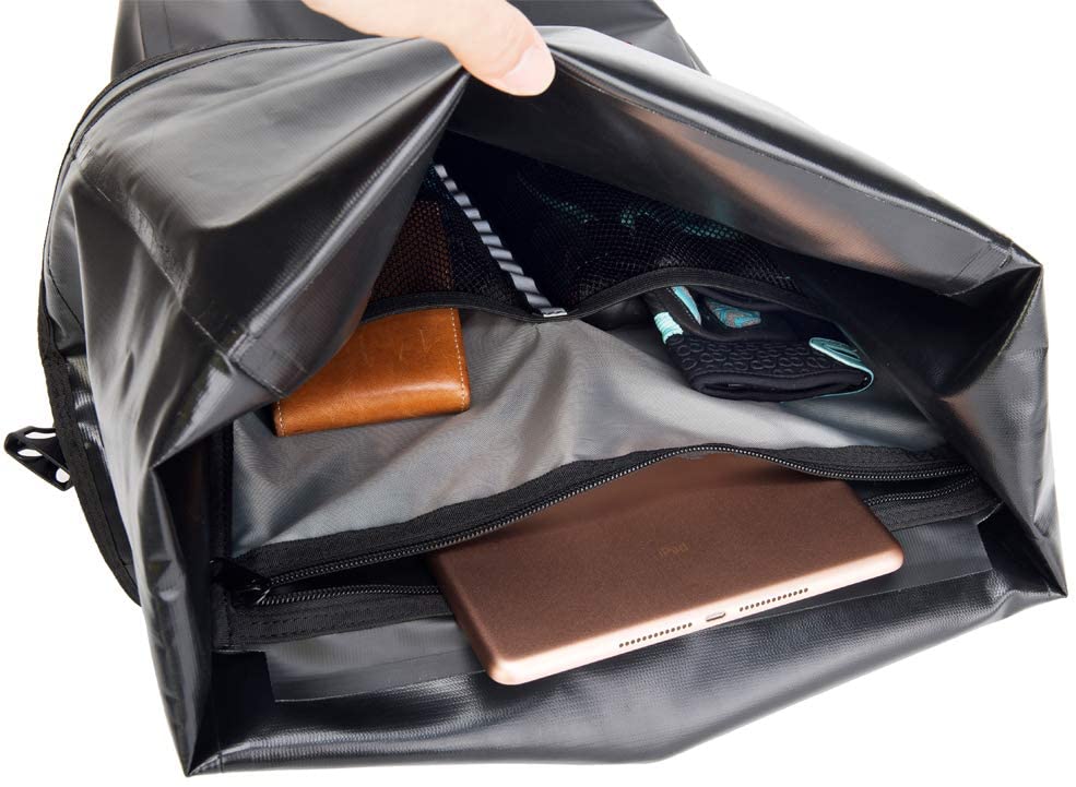 Datorită materialului 100% impermeabil și a închiderii tip roll, asigurată cu cataramă, obiectele dumneavoastră vor rămâne uscate și în siguranță, indiferent de vreme.