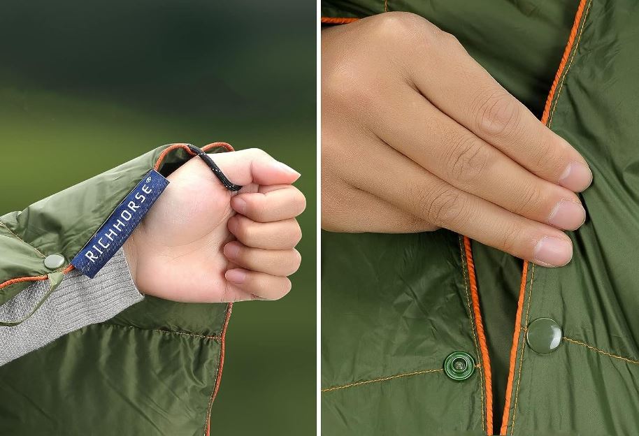 Butonii laterali permit utilizarea păturei și ca poncho, de exemplu, atunci când stai afară în vreme mai rece.