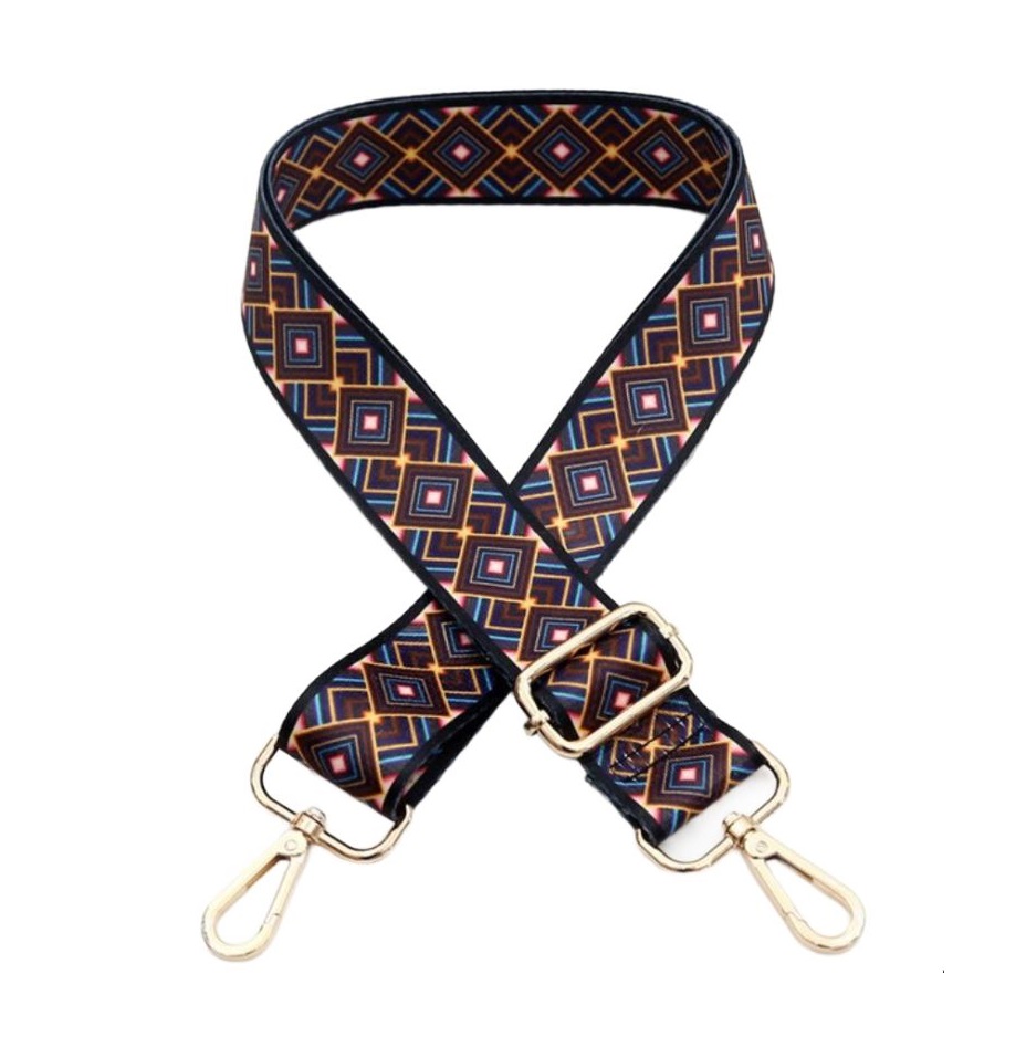 Cureaua colorată stilizată pentru umăr va fi o frumoasă revigorare pentru orice geantă. Cureaua ajustabilă cu carabiniere se fixează ușor pe orice geantă și în câteva secunde îi va schimba complet aspectul. Specificații: Material: nylon, aliaj de zinc Latime: 3,8 cm lungime: 78 - 140 cm Greutate: cca 90 grame Culoarea carabinelor și cataramei:aurie Ambalajul conține o curea pentru geantă.