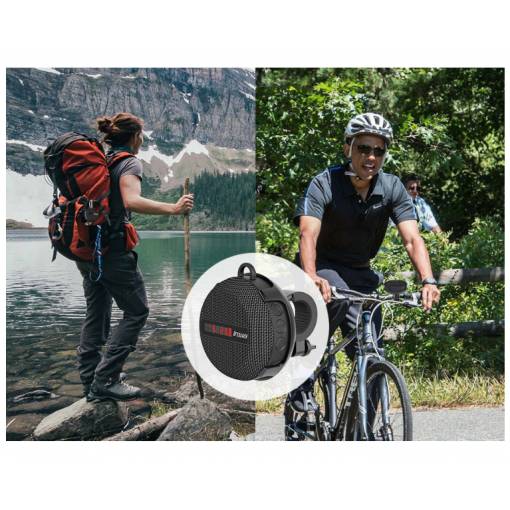 Ambalajul conține o boxă portabilă, rezistentă la apă pentru bicicletă.