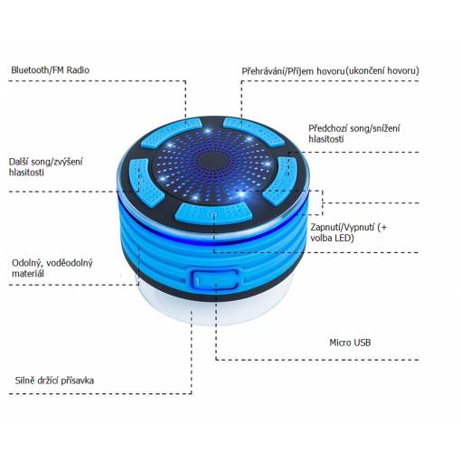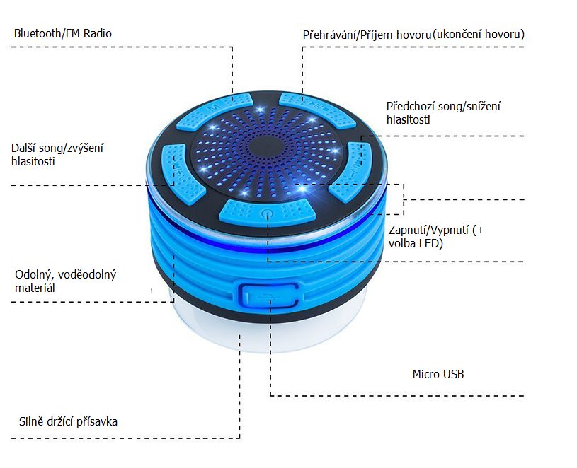 Culoarea iluminării LED poate fi schimbată printr-o apăsare scurtă a butonului de pornire. O apăsare lungă a butonului de pornire va porni sau opri difuzorul.